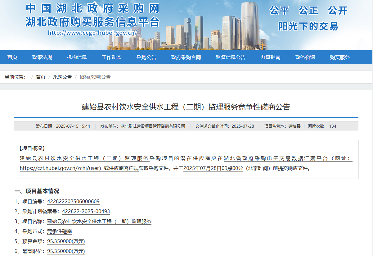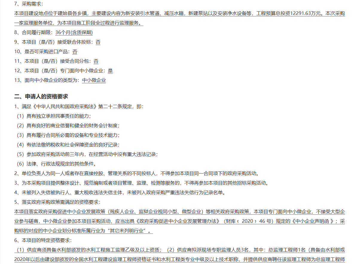 3、项目名称:建始县农村饮水安全供水工程(二期)监理服务