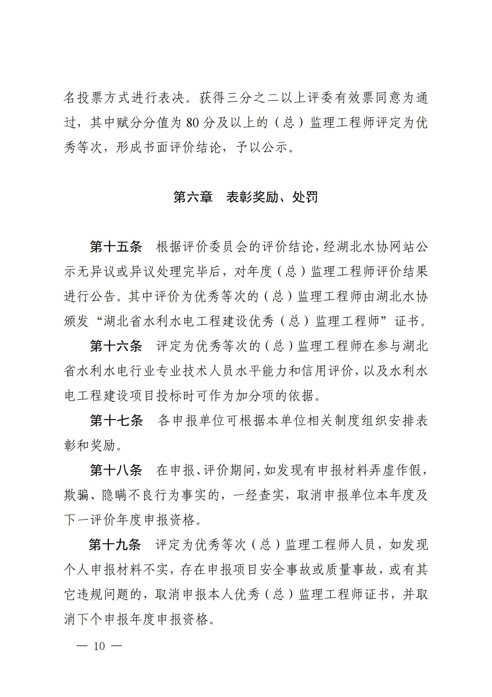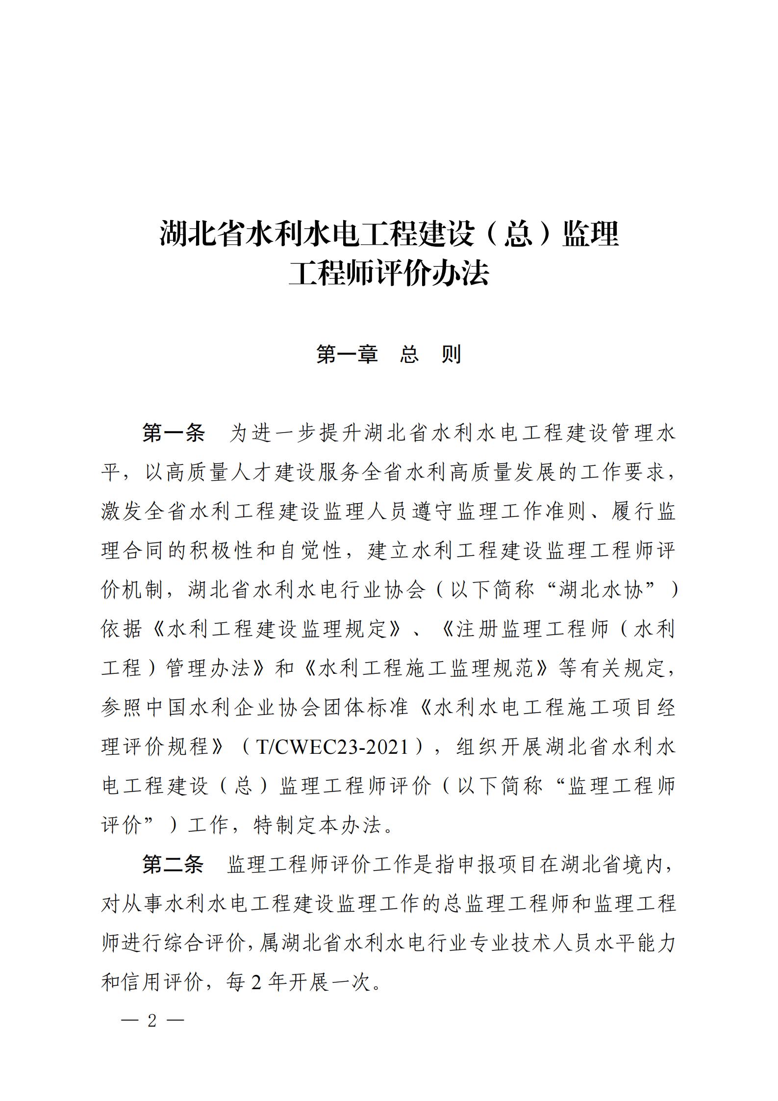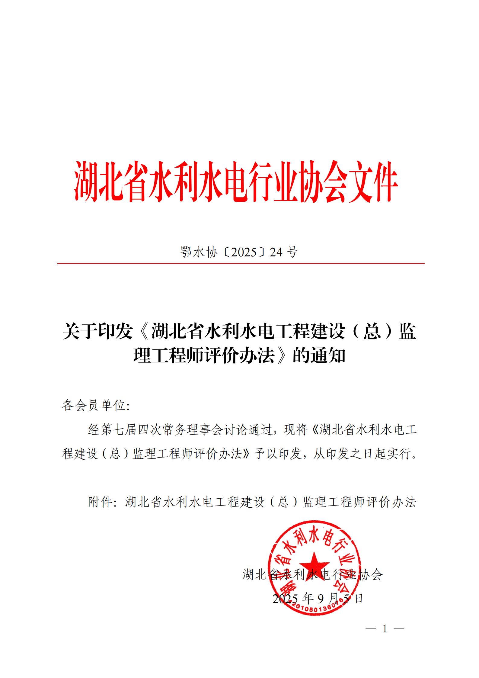 关于印发《湖北省水利水电工程建设(总)监理工程师评价办法》的通知