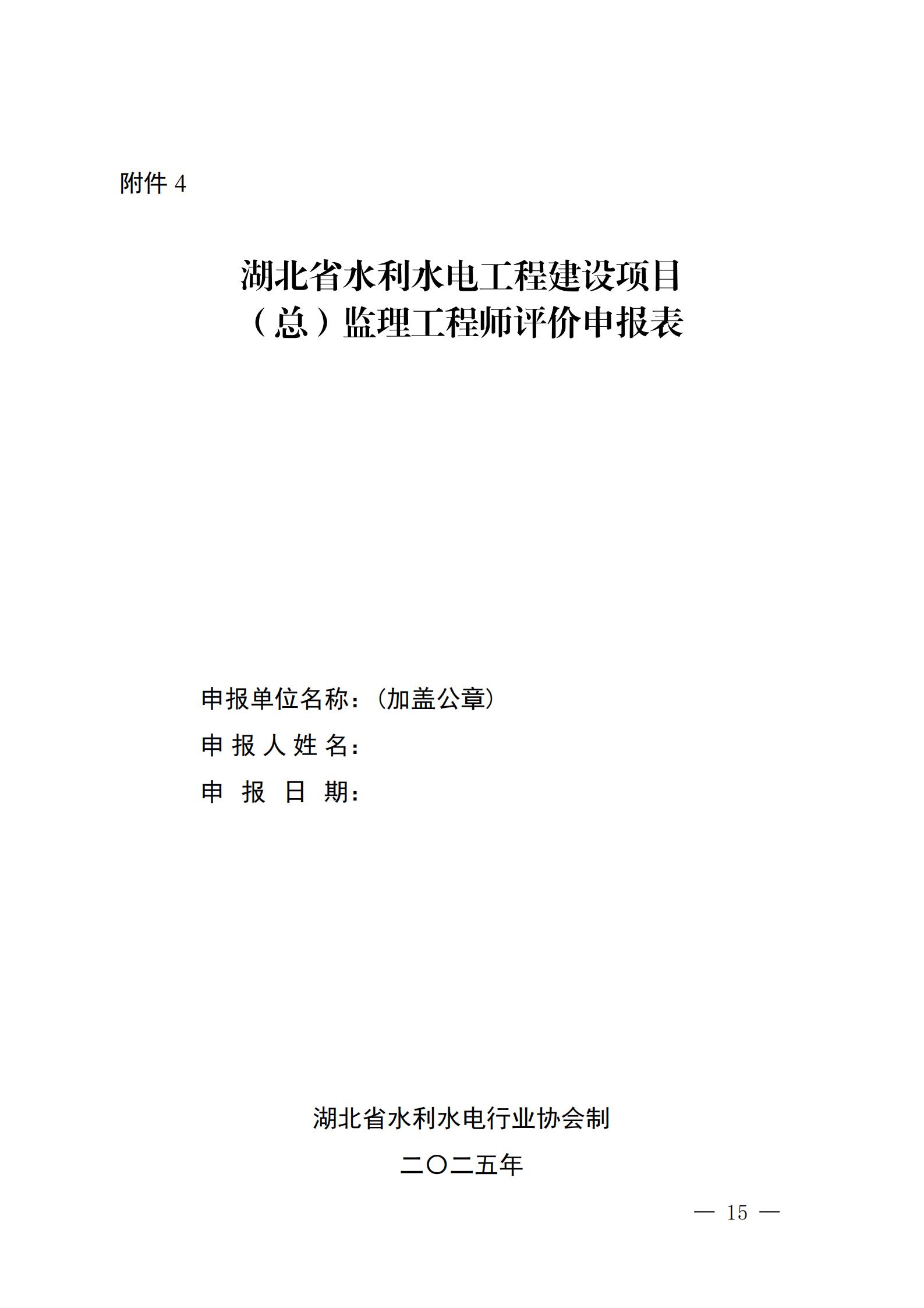 关于开展2024年度湖北省水利水电工程建设 (总)监理工程师评价的通知