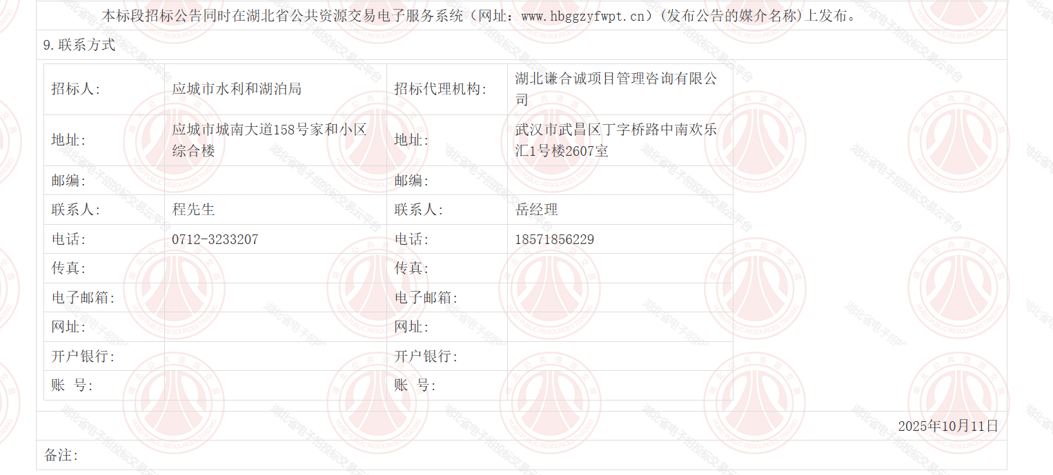 孝感市应城市农村饮水提标升级工程工程监理(HBYC-202509SL-001001002)招标公告