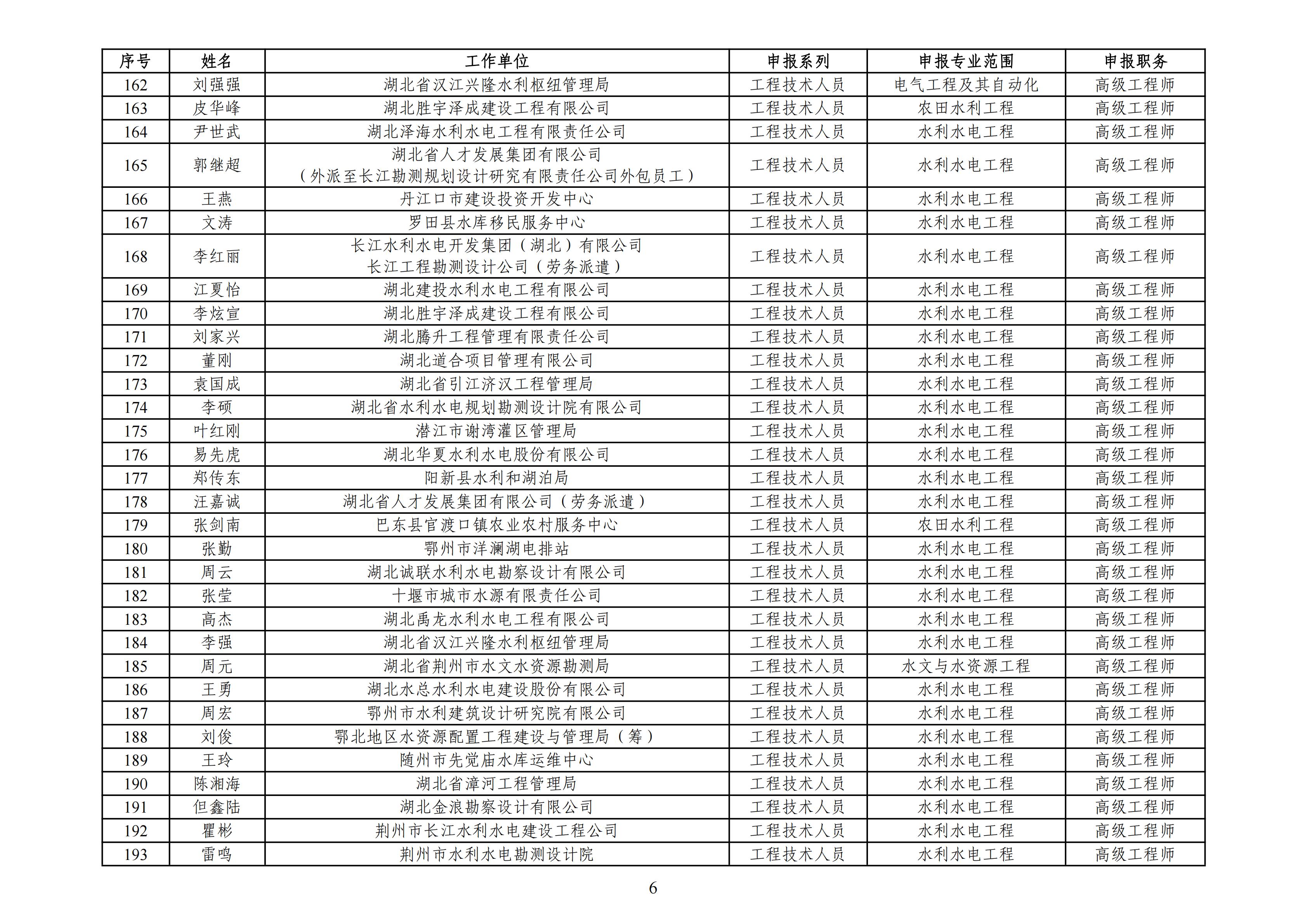 湖北省2025年度工程系列水利电力专业职称参评人员评审前名单公示