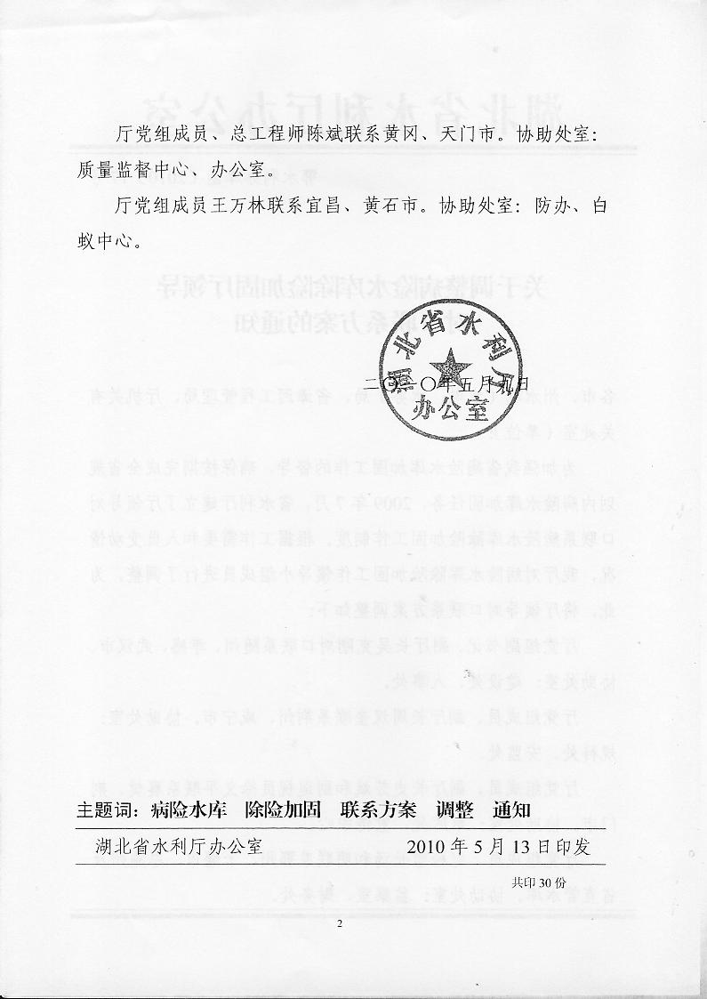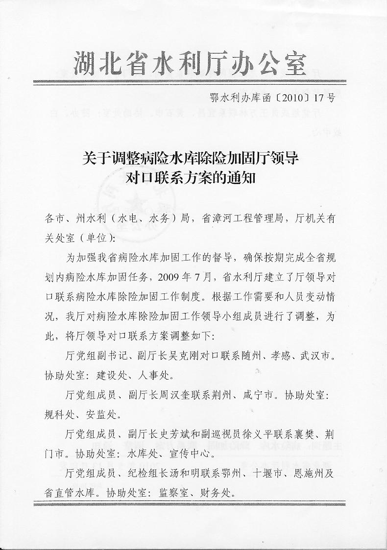 关于调整病险水库除险加固厅领导对口联系方案的通知