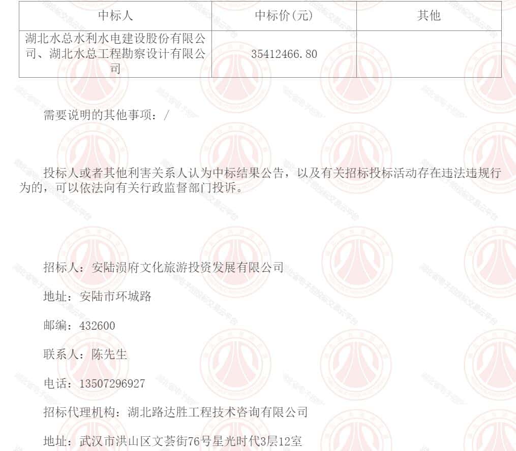 安陆市金泉泵站灌区续建配套与节水改造项目(招标项目名称)安陆市金泉泵站灌区续建配套与节水改造项目(EPC)(标段名称)于2023年07月27日在湖北省电子招标投标交易平台(网址:www.hbbidcloud.cn)、湖北省公共资源交易电子服务系统(网址:www.hbggzyfwpt.cn)(媒介名称)上发布了评标结果公示,公示期为2023年07月27日至2023年07月31日。招标人已经依法确定中标人并对本次招标的中标结果予以公告:
