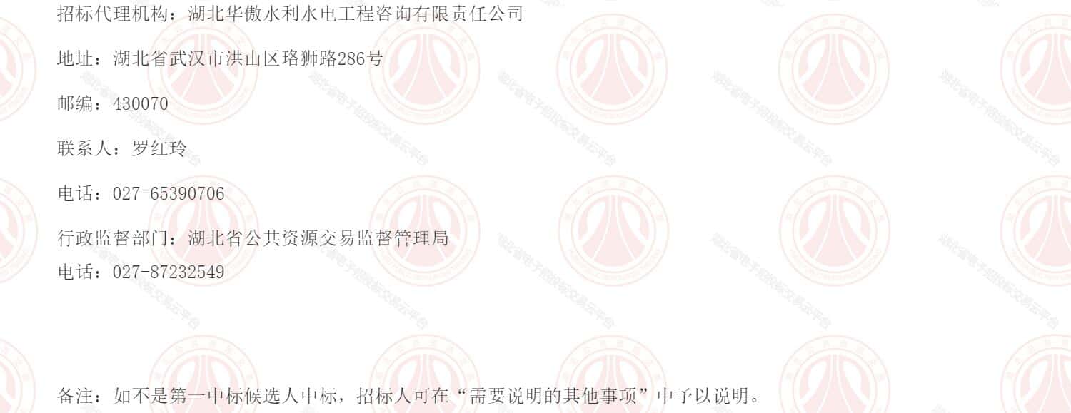 招标代理机构:湖北华傲水利水电工程咨询有限责任公司