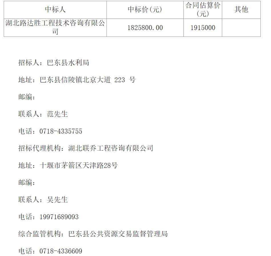 | 招标人:巴东县水利局 | |||||||||