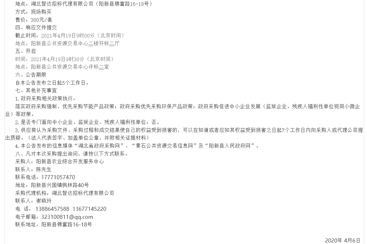 地点:湖北智达招标代理有限公司(阳新县锦富路16-18号)