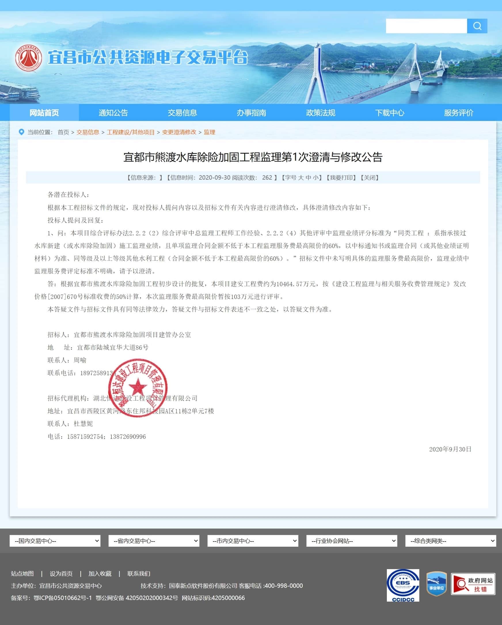 招标人:宜都市熊渡水库除险加固项目建管办公室