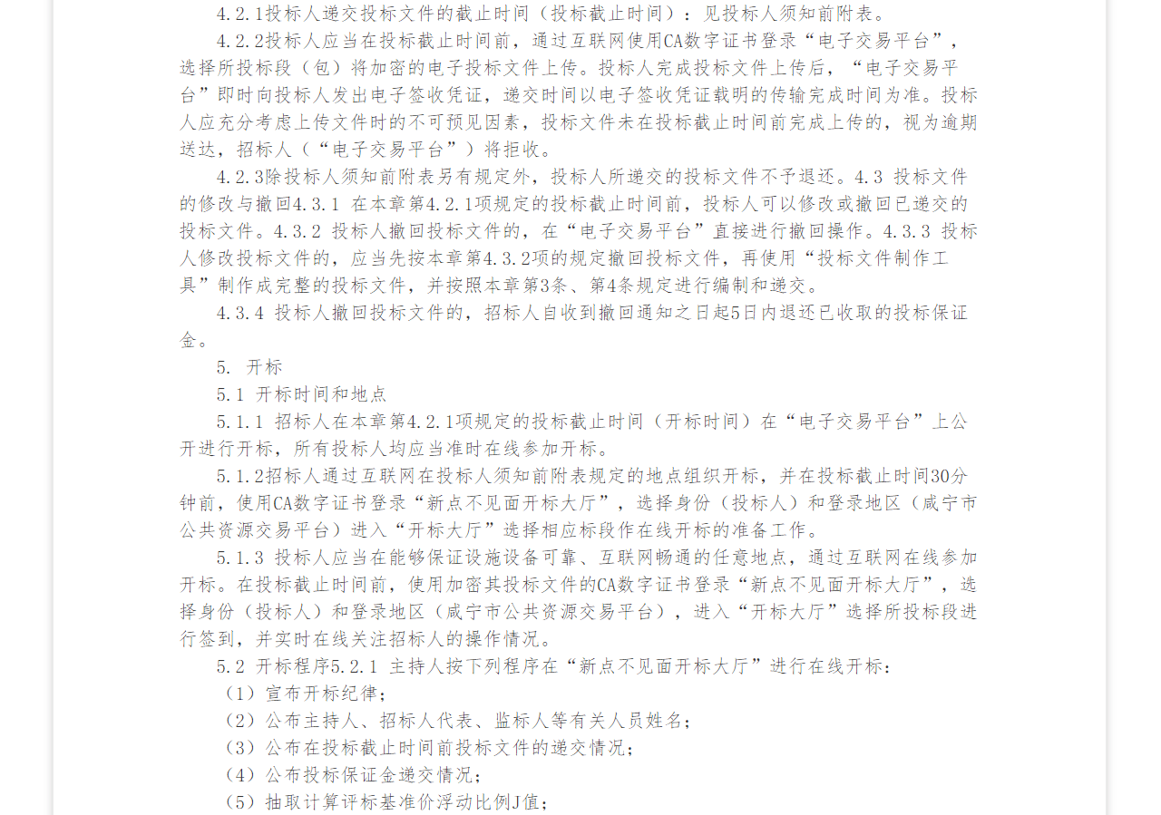 5.1.1 招标人在本章第4.2.1项规定的投标截止时间(开标时间)在“电子交易平台”上公开进行开标,所有投标人均应当准时在线参加开标。
