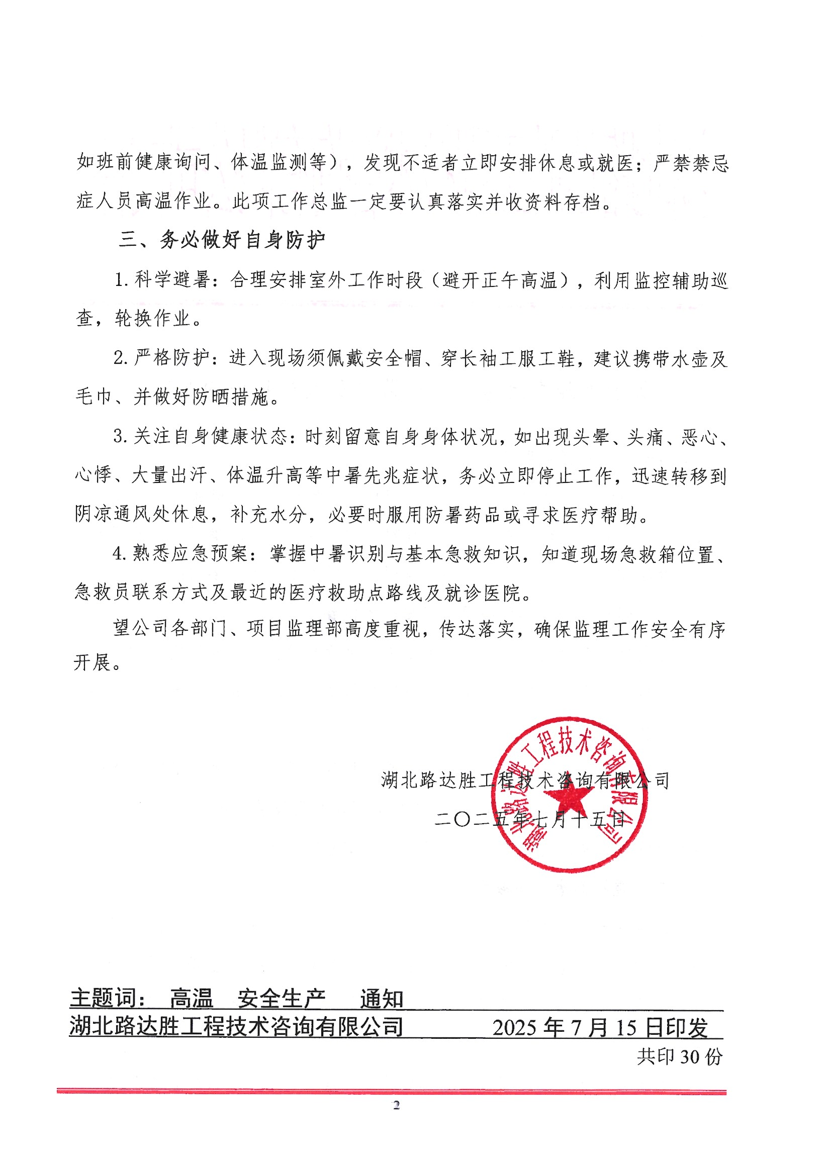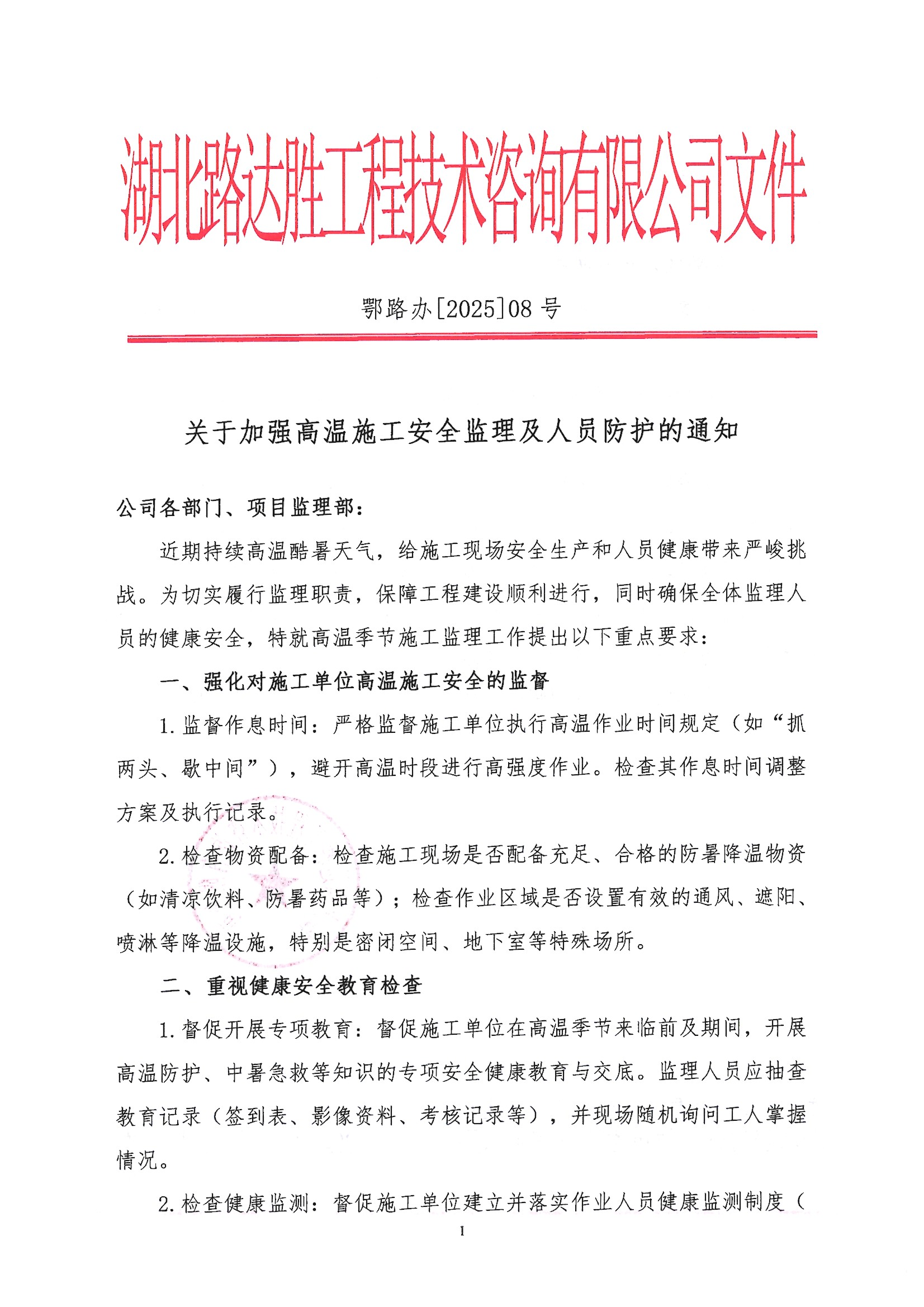 关于加强高温施工安全监理及人员防护的通知