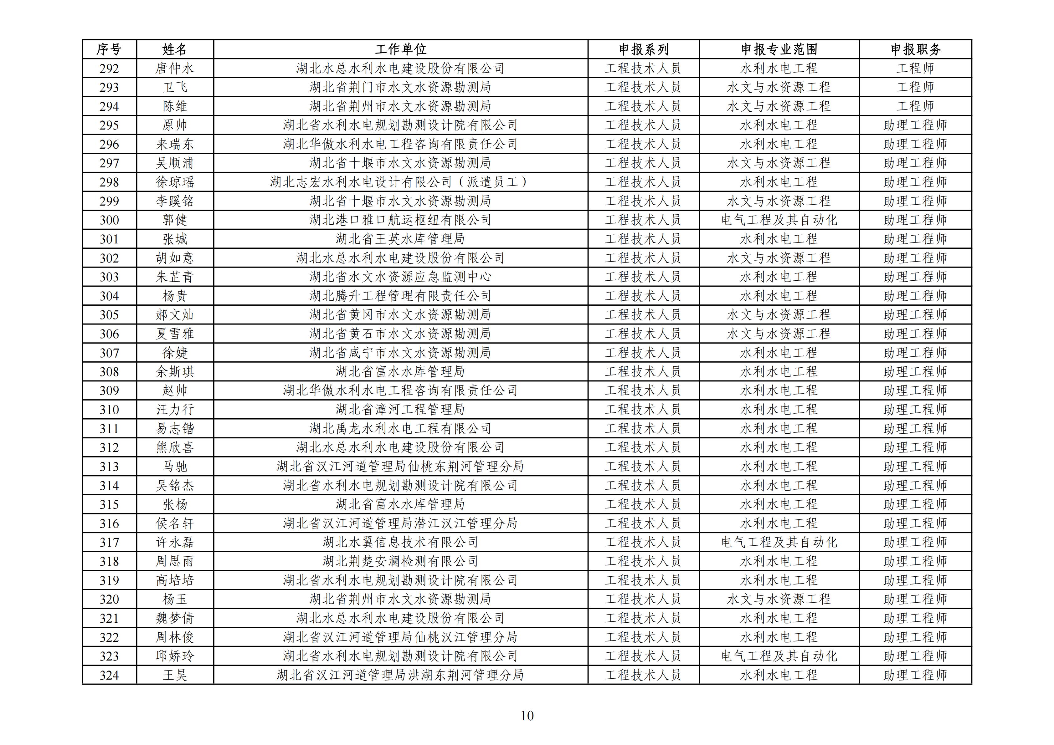 湖北省2025年度工程系列水利电力专业职称参评人员评审前名单公示