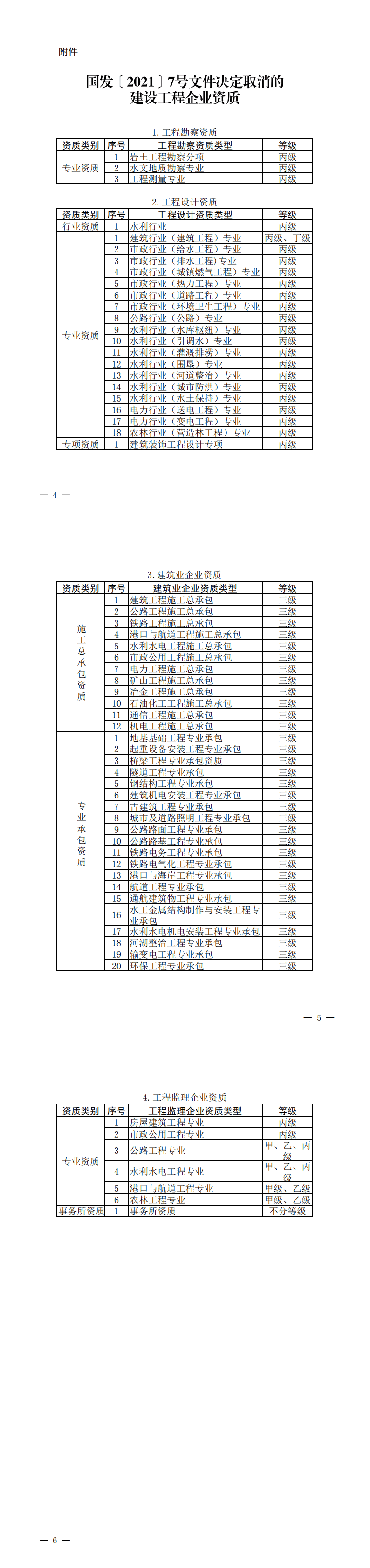 附件:国发〔2021〕7号文件决定取消的建设工程企业资质