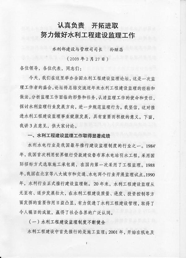 认真负责开拓进取努力做好水利工程建设监理工作