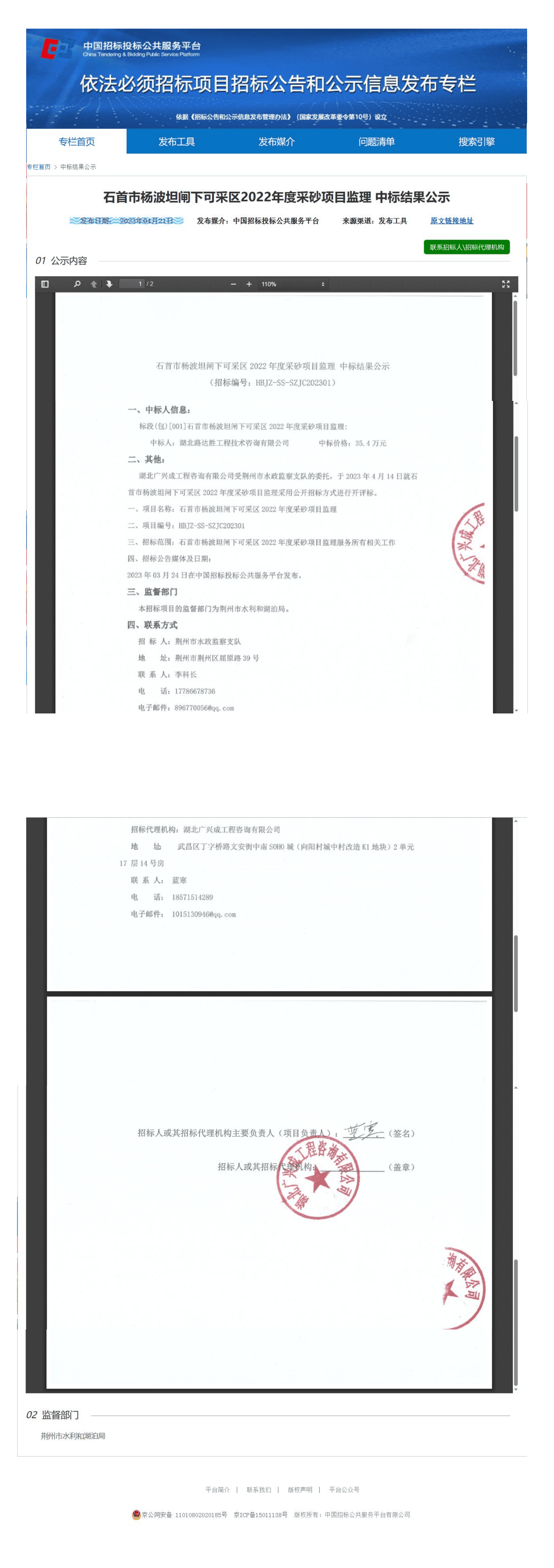 石首市杨波坦闸下可采区2022年度采砂项目监理 中标结果公示